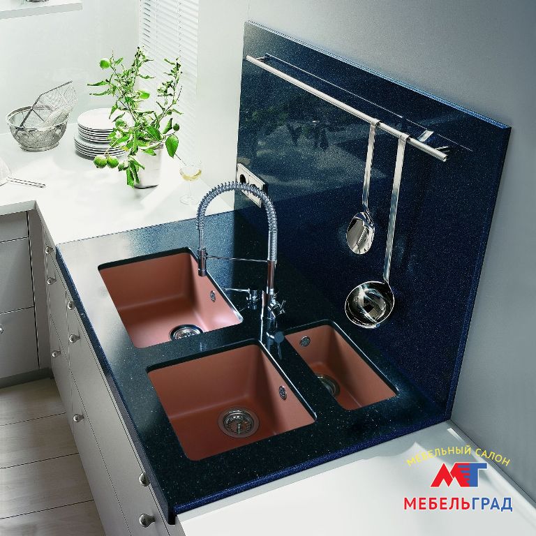 • Для элегантной кухни со столешницей из камня, композита или массива дерева с водостойкой обработкой