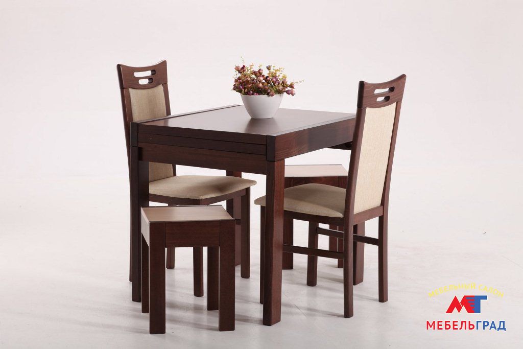 Компактный и комфортный стол, прекрасно подойдет для кухни небольшого размера. Поскольку стол раздвижной, он — прекрасный вариант для тех, кто любит принимать гостей.Материал — массив бука. Габаритные размеры: 1200 (2400 разложенный) * 900 * 740мм